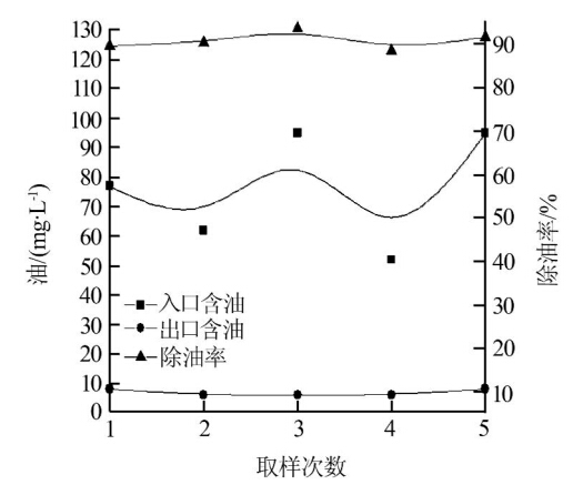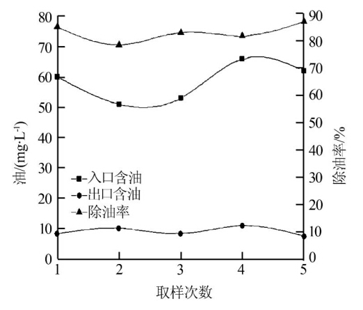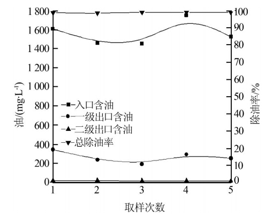 (入口流量4 m3/h、入口含油1 453~1 753 mg/L)